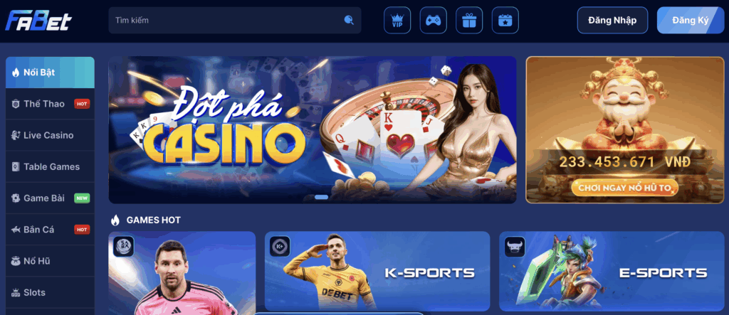 Casino live và slot game tại Fabet được đầu tư mạnh mẽ, với khuyến mãi riêng biệt giúp người chơi tận hưởng không khí sòng bạc thực thụ ngay tại nhà. Các ưu đãi tập trung vào việc tăng vốn và kéo dài thời gian chơi.