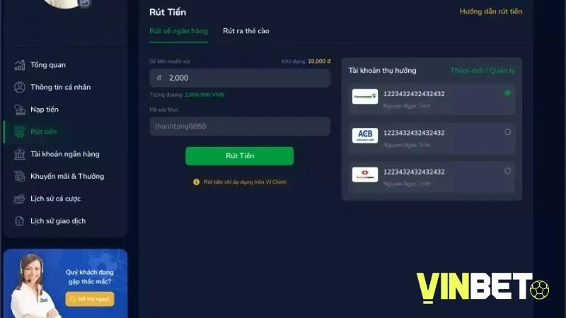 Hướng dẫn rút tiền Vinbet và các vấn đề thường gặp