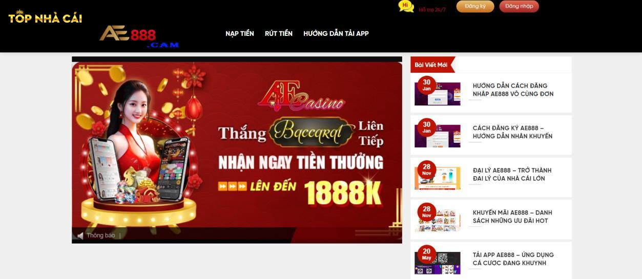 Nhà cái AE888 còn cung cấp các dịch vụ phụ trợ như nạp rút tiền nhanh chóng, đảm bảo an toàn tuyệt đối qua các phương thức thanh toán đa dạng như ngân hàng nội địa, ví điện tử, thẻ cào, hay chuyển khoản ngân hàng trực tuyến. Thời gian xử lý giao dịch cực nhanh, chỉ vài phút, giúp người chơi tiết kiệm thời gian, nâng cao trải nghiệm cá cược.