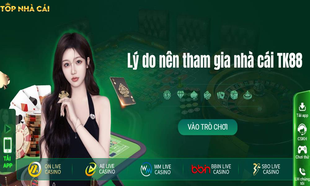 Hãy lựa chọn Nhà cái TK88 như một người bạn đồng hành tin cậy trên hành trình chinh phục các trò chơi cá cược hấp dẫn nhất hiện nay.
