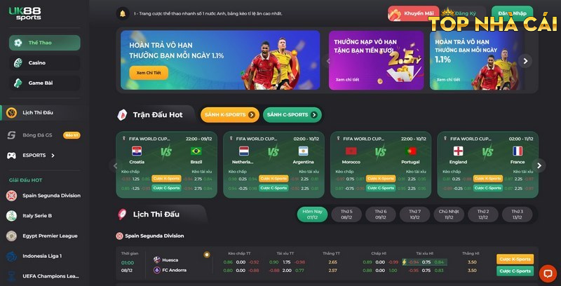 Ngoài ra, cá cược thể thao tại Uk88 còn đi kèm các dịch vụ hỗ trợ như tỷ lệ kèo uy tín, dữ liệu phân tích chuyên sâu, dự đoán chính xác giúp người chơi đưa ra quyết định đúng đắn. Chính sự minh bạch, công bằng và hấp dẫn này đã giúp hệ thống cá cược thể thao tại Uk88 trở thành điểm đến yêu thích của cộng đồng cược thủ.